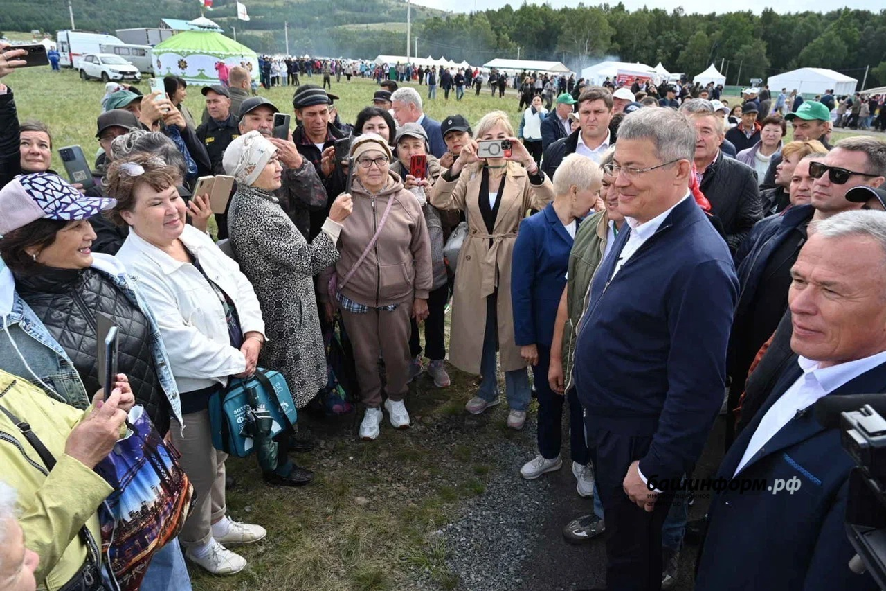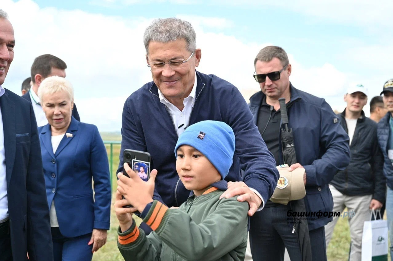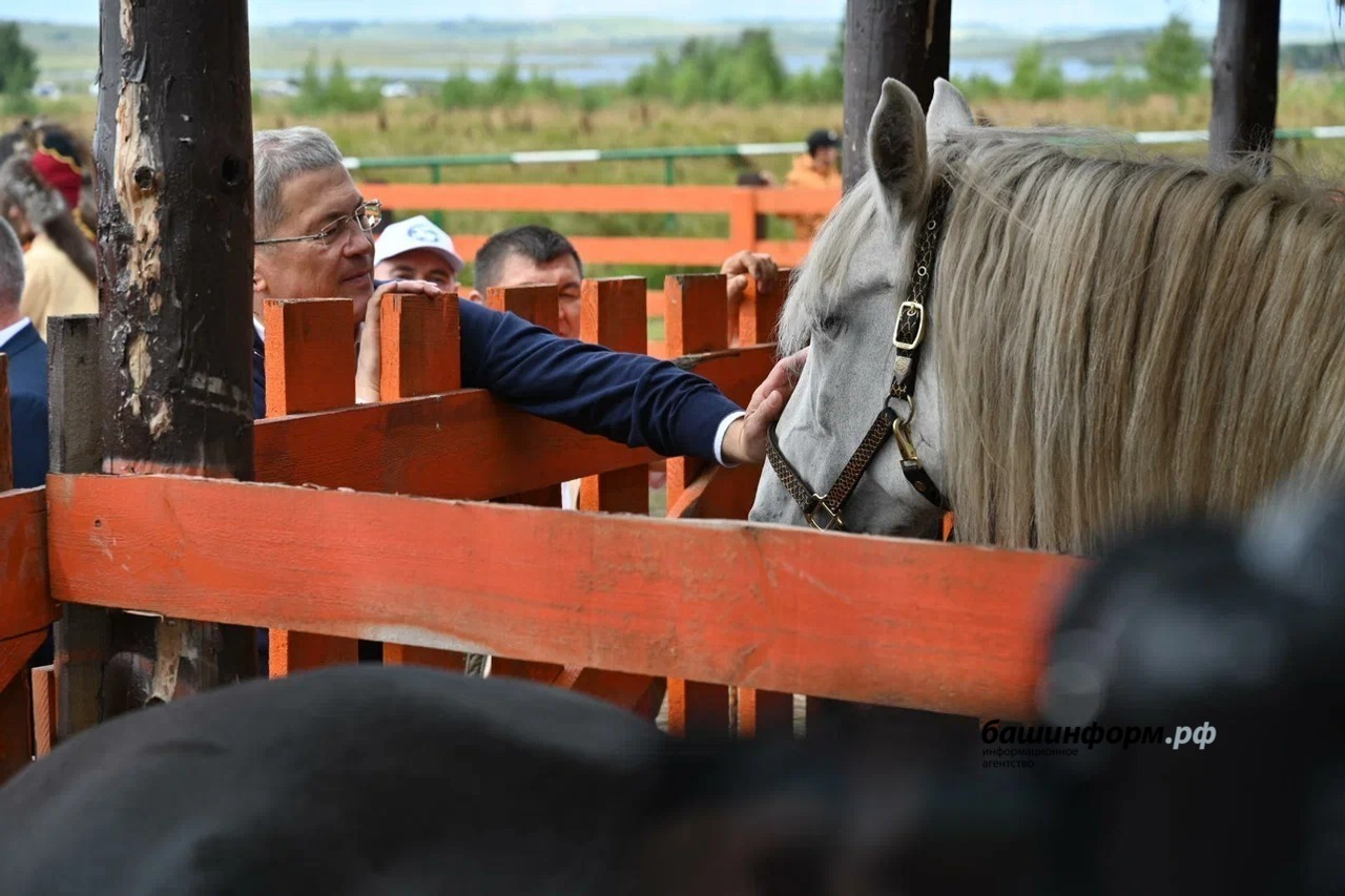 Радий Хәбиров тамашасылар менән бергә 500-ҙән ашыу һыбайлы ҡатнашҡан башҡорт аттары парадын ҡараны.