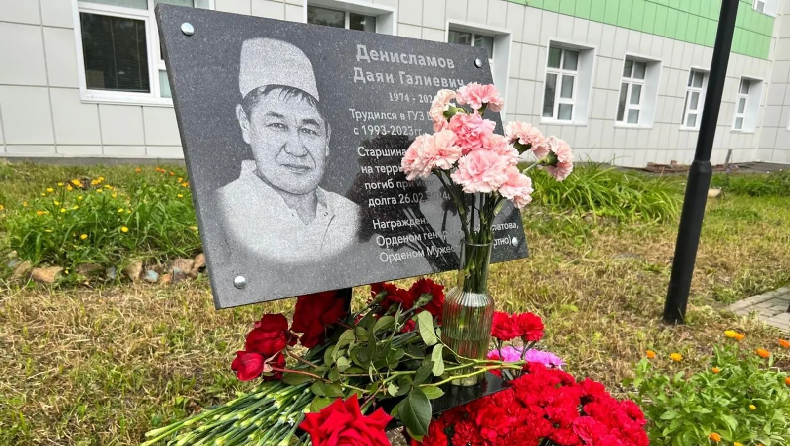 Белорет ҡалаһы поликлиникаһы ихатаһында махсус хәрби операцияла һәләк булған яҡташыбыҙ Даян Ғәли улы Денисламов иҫтәлегенә мемориаль таҡтаташ асылды.
