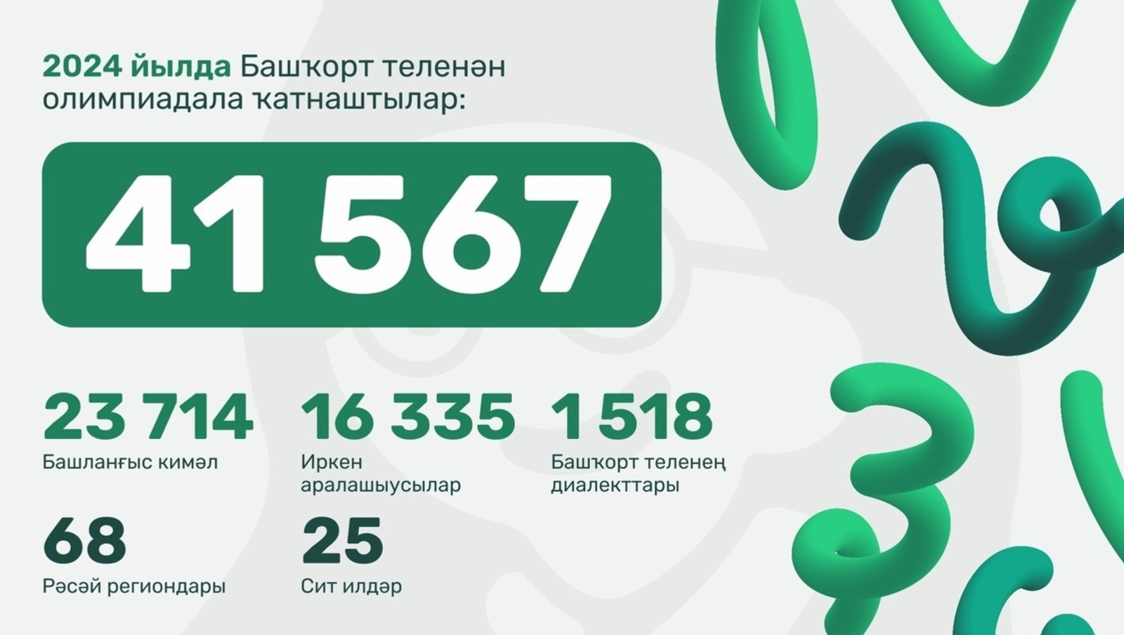 Айырыуса Өфө, Саҡмағош, Бәләбәй һәм Туймазы райондары халҡы әүҙемлек күрһәтте. Теркәлгән ҡатнашыусылар араһында Силәбе, Һамар, Ырымбур өлкәләре, Татарстан Республикаһы, шулай уҡ Мәскәү, Сорғот, Нижневартовск, Вязьма һәм Санкт-Петербург ҡалалары вәкилдәре бар ине. Бынан тыш, олимпиадала Үзбәкстан, Төркиә һәм Берләшкән Ғәрәп Әмирлектәрендә йәшәүселәр ҡатнашты.