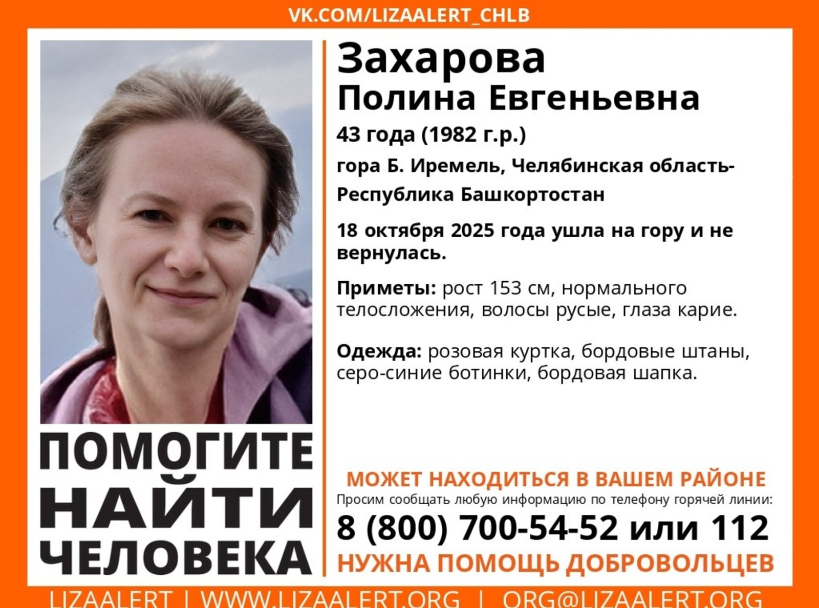 Силәбе өлкәһенән турист ҡатын-ҡыҙ 18 октябрҙә Оло Ирәмәлдә хәбәрһеҙ юғалған.