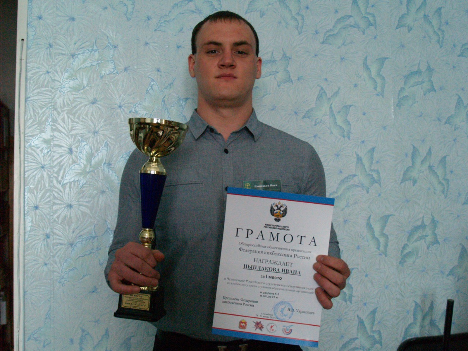 ӨФӨ, 2018 йыл, 7 февраль. /«Башинформ» мәғлүмәт агентлығы, Әлим Фәйезов/. Силәбелә белем биреү ойошмалары студенттары араһында кикбоксинг буйынса Рәсәй студенттары спорт союзы чемпионаты тамамланды. К-1 бүлегендә 91 килограмға тиклем ауырлыҡ категорияһында Башҡорт дәүләт университетының Сибай институты юридик факультетының 4-се курс студенты Иван Цыплаков беренсе урын алды.