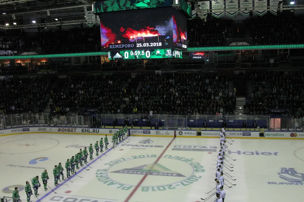 ӨФӨ, 2018 йыл, 28 март. /«Башинформ» мәғлүмәт агентлығы, Дарья Петрова/. Өфөнөң «Салауат Юлаев» командаһы менән Силәбенең «Трактор»ы араһында серияның хәл иткес етенсе уйыны Кемероволағы янғын ҡорбандарын иҫкә алыуға арналған бер минут тынлыҡтан башланды. «Өфө-Арена»һында был көндө күңел асыу саралары булманы. Әммә ул туп-тулы трибуналарға Өфө командаһын алға «ҡыуырға» ҡамасауламаны.