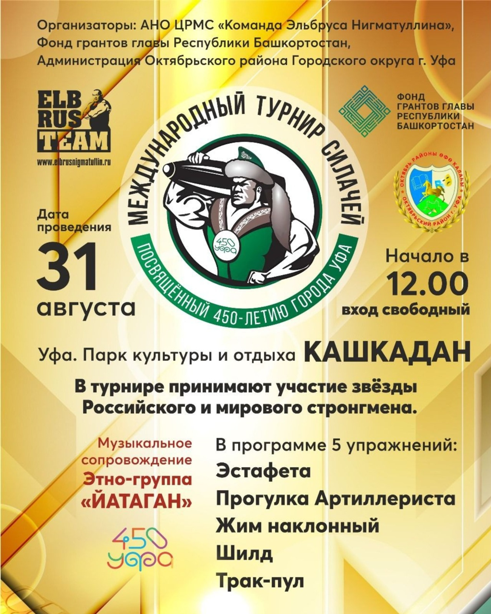 Рәсәйҙең иң көслө кешеһе Эльбрус Ниғмәтуллин хәбәр итеүенсә, турнирҙа Рәсәй, Ҡаҙағстан һәм Ҡырғыҙстан стронгмендары ҡатнаша. Өфөләр һәм баш ҡала ҡунаҡтары Белгородтан донъя чемпионы Давид Шамей һәм Донъя кубогын алған Валерий Савин (Сорғот) араһындағы алышты ла ҡарай ала, тип билдәләне ул. Донъя кимәлендәге бәһлеүән Мөхәммәт-Али Тохтоматов та ошо титул көрәшә.