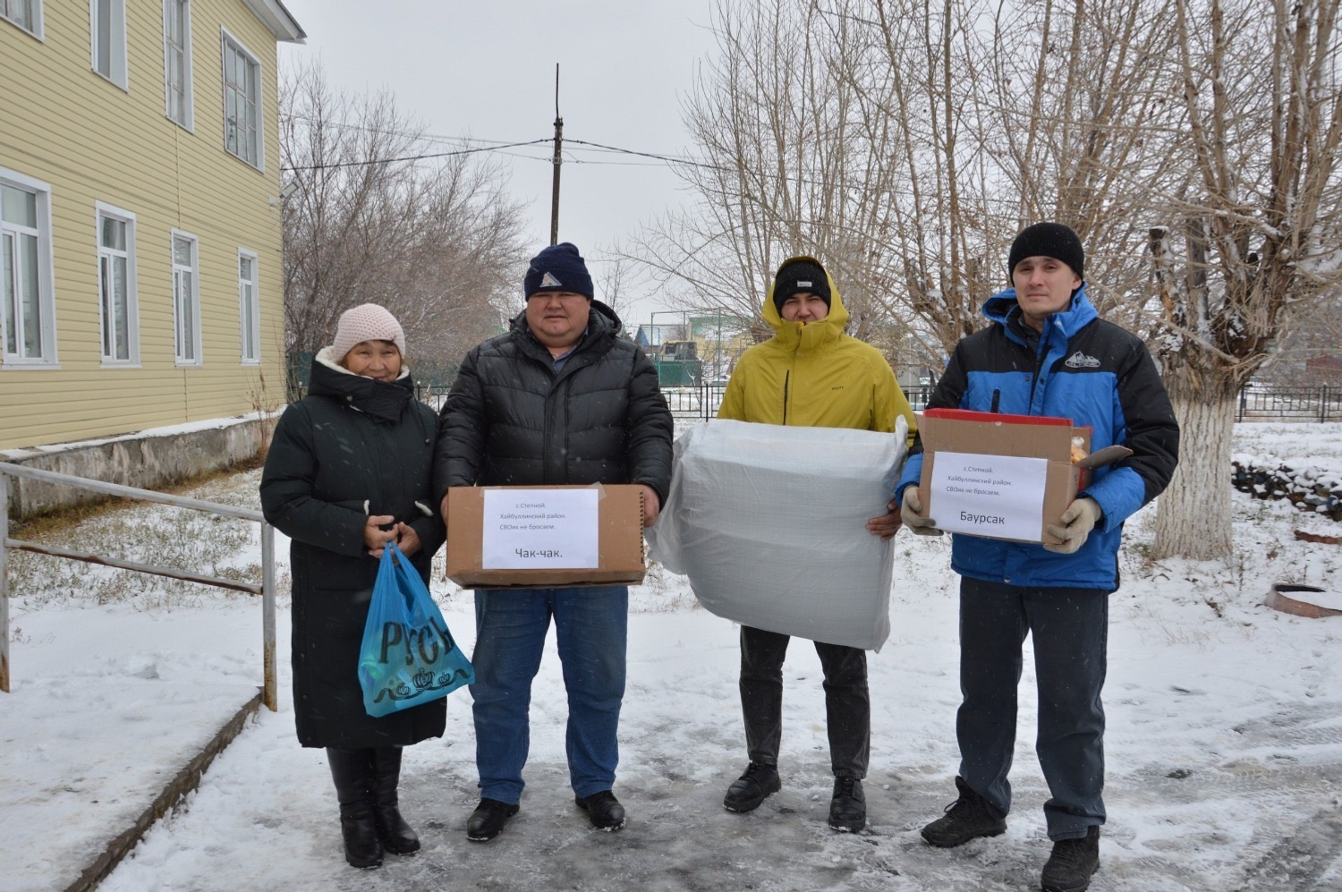 – Гуманитар ылау менән бергә 25 маскировка селтәре ебәрҙек, ауыл халҡы аҙыҡ-түлек, быҡтырылған ит һәм салаттар һалды. Мәскәүҙән Дмитриевтар ғаиләһе ҙур өлөш индерҙе, улар беҙгә 196 мең һумлыҡ ярҙам ебәрҙе. Һалдаттарҙың һорауы буйынса бөтә кәрәк-яраҡтарҙы һатып алдыҡ, – тине Филүзә Ишемғолова.