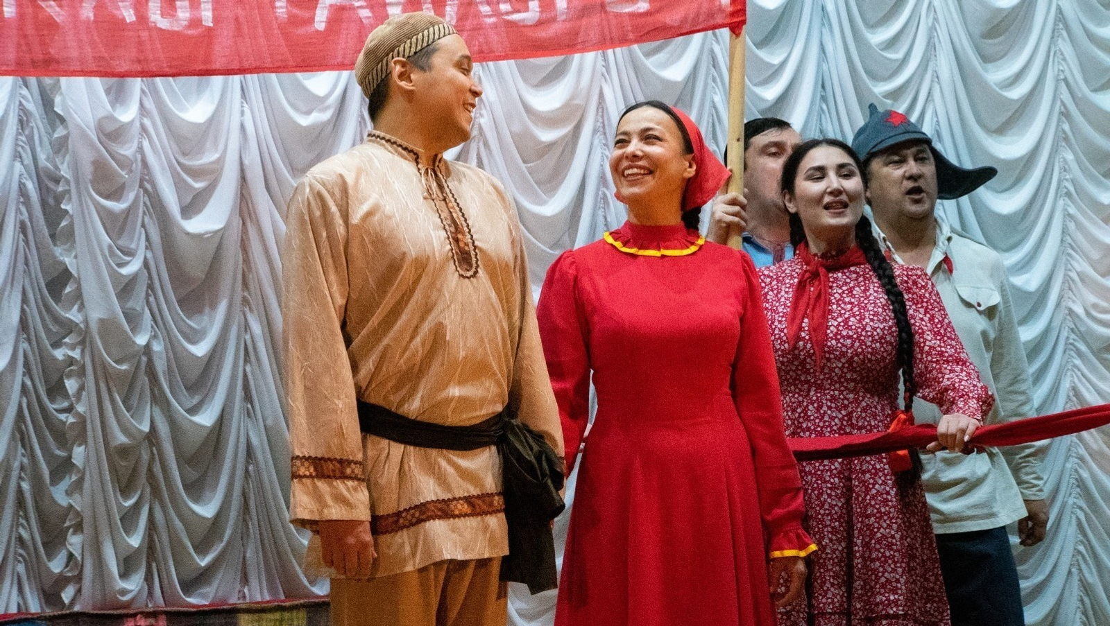 Спектаклдән һуң театр артистары тәүәкәндәр менән маскировка селтәрҙәрен үреүҙә ҡатнашты.