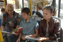 Өфөлә «Китап уҡыусы троллейбус» пассажирҙары «Толпар» журналы менән танышты